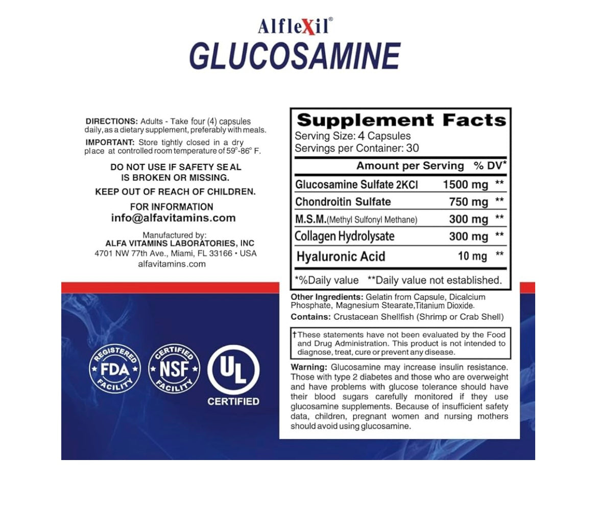 ALFLEXIL SUPLEMENTO nutricional del glucosamina y condroitina de alta calidad ,soporte saludable para articulaciones ,HUESOS y rodillas ,Rico en MSM y colageno,ingredients natural organico