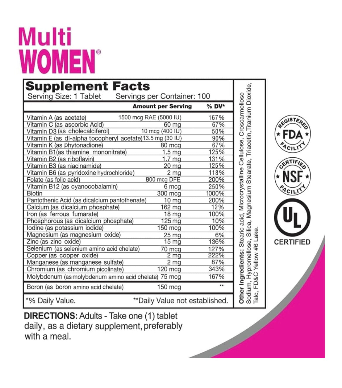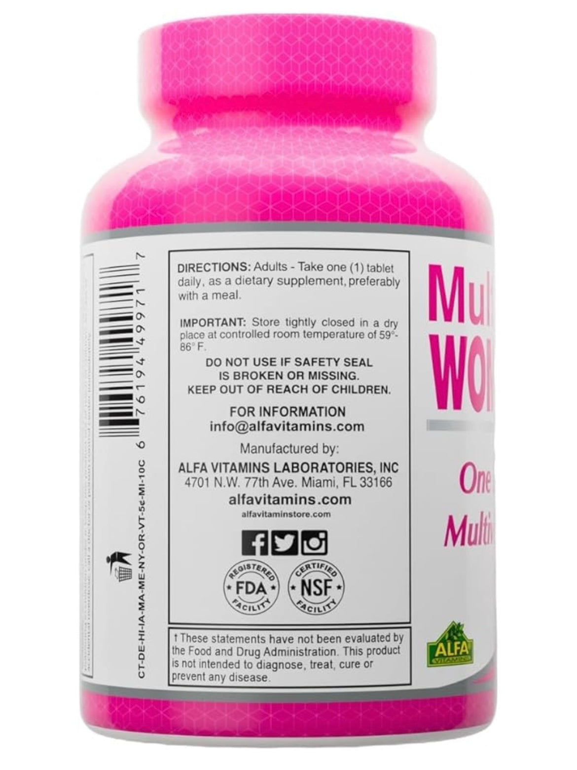 ALFA VITAMINS Multi Women Vitaminas SUPLEMENTO dietetico con vitaminas y minerals esenciales para mujeres aminoacidos +antioxidantes,100 tabletas