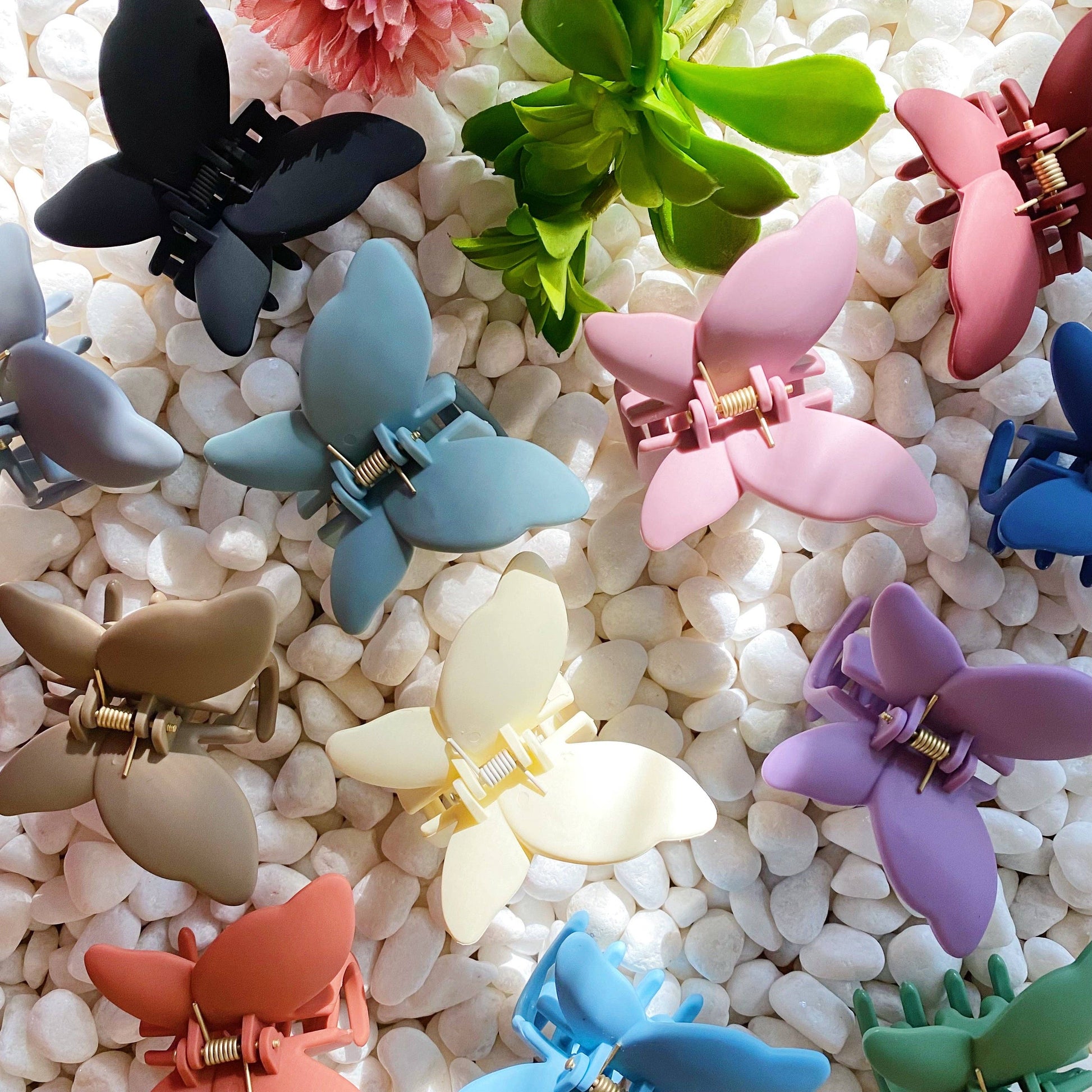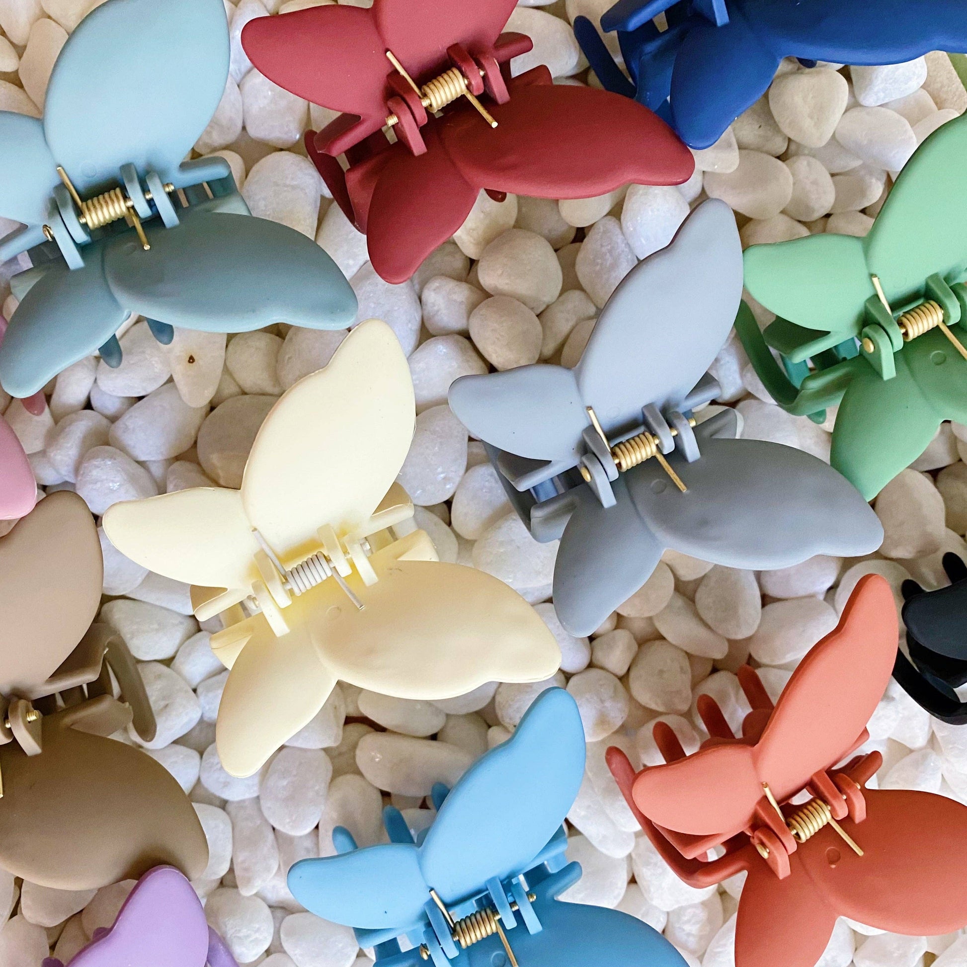 Set of three hair clips. Absolutely beautiful shapes and colors of butterflies in these hair claw sets. Matte color finish looks so clean and pretty!